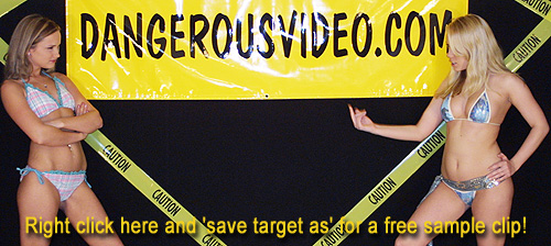 Are you ready to rock? New Dangerous Curves girl Jennifer is ready...Ready to rock Reese's world that is! Fans of Dangerous Curves know Reese may look sweet, but is not to be underestimated. She brings it right to the confident newcomer, employing all the skill she picked up in her rookie outing, plus more! Jennifer is more than ready though. She wants to steal the show in her first match, and do so at Reese's expense! Jennifer is catty, using every chance she can get to squeeze the fight out of Reese with tight head and body scissors and nasty hairpulling, while talking a lot of shit in the process! The mouth on this girl would make a sailor blush! Jennifer delivers the pain both psychically and verbally, but Reese can go and is not intimidated. She lets her actions do the talking, using a diverse catalog of moves like bow and arrows, camel clutches, and chinlocks along with a wide array of scissors. It's almost as if the more Jennifer tries to break her down, the more determined she becomes! Frustration sets in for one girl as her opponent starts taking over, ending an energetic match with a brutal guillotine choke / body scissors combo! No doubt about it, DC015 will leave you wanting an encore!